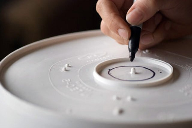 Bước 1: Lấy bút vẽ một hình tròn đường kính khoảng 5cm ở dưới đáy thùng. Lưu ý, lỗ quá bé thì không đủ diện tích để cây phát triển, lỗ to hơn lại dễ rơi đất và cây ra ngoài. Sau đó lấy dao đục lỗ đường tròn theo hình vẽ.