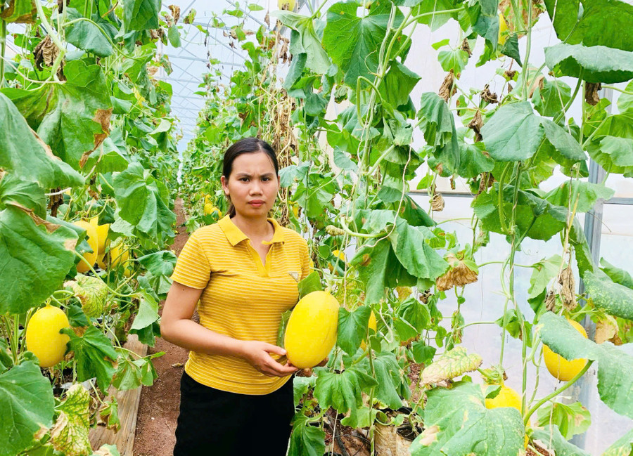 “Nhờ có nhà màng nên nhiệt độ trong vườn được giữ ổn định, cây phát triển tốt, năng suất đạt 4 tấn/sào/vụ. Năm 2024, cả 7 sào dưa lưới đều đưa vào canh tác đồng loạt, mỗi năm trồng 3 vụ, thu được trên 84 tấn. Với giá bán 30-65 ngàn đồng/kg, sau khi trừ chi phí, tôi lãi hơn 2 tỷ đồng”-chị Thu chia sẻ.
