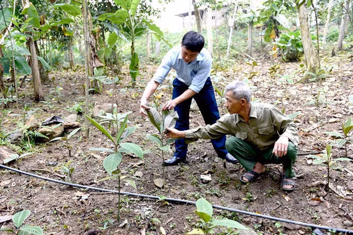Mô hình trồng cây khôi nhung dưới tán rừng tự nhiên của gia đình anh Ma Văn Trưởng, thôn Thắm, xã Hùng Mỹ, huyện Chiêm Hóa (Tuyên Quang).