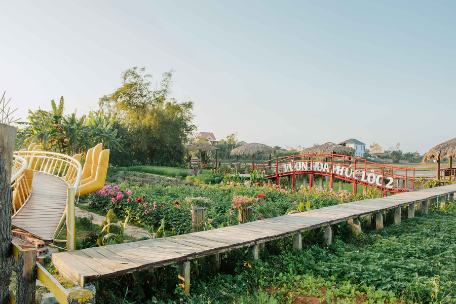 | Đông đảo du khách không ngại đường xa đến "sống ảo" tại vườn hoa Phúc Lộc 2. Ảnh: Bá Cường |