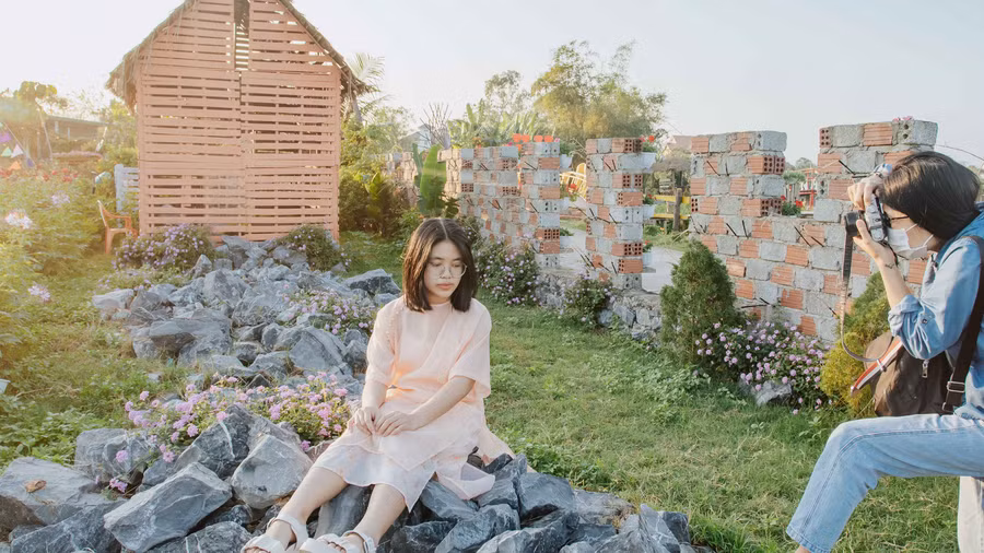 Nhận thấy mô hình trồng hoa và xây dựng các tiểu cảnh rất được bạn trẻ tìm đến "check-in", anh Hải cất công đến tìm hiểu tại các vườn hoa Đà Lạt, Gia Lai. Năm 2020, anh vay 500 triệu đồng để đầu tư cải tạo lại toàn bộ mảnh vườn rộng 2.500 m2. Dù diện tích không lớn nhưng biết cách xây dựng, bố trí thành nơi hấp dẫn khách đến "sống ảo”.