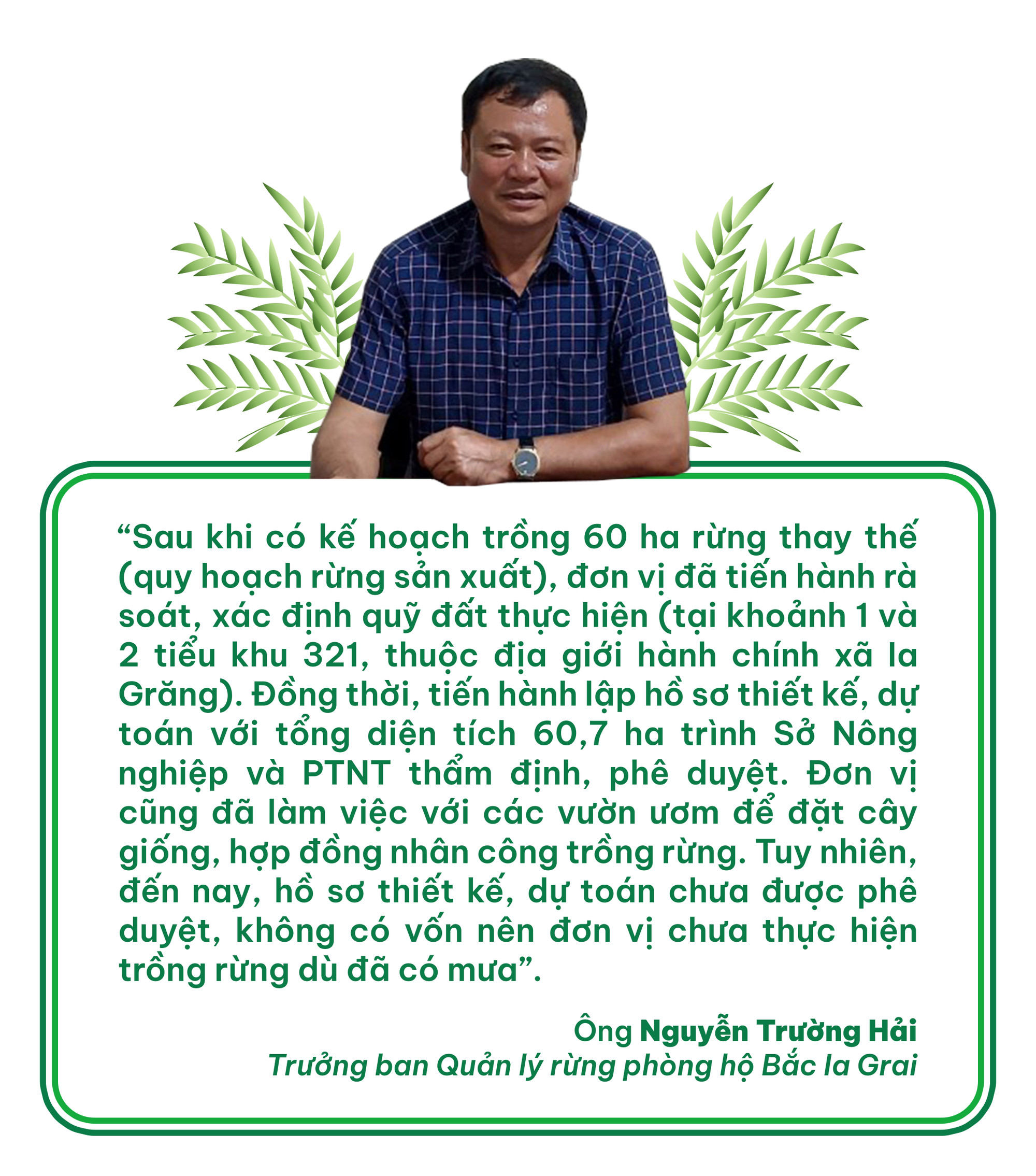 Theo ông Nguyễn Ngọc Ny-Phó Hạt trưởng Hạt Kiểm lâm huyện Chư Păh: Trong năm 2023 và 2024, các hộ tham gia trồng rừng phải tự túc về kinh phí đầu tư, không còn sự hỗ trợ của Nhà nước. Do đó, việc tuyên truyền, vận động người dân chuyển sang trồng rừng rất nan giải vì đa số các hộ có điều kiện kinh tế khó khăn.