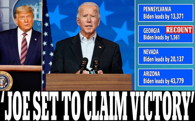 Kết quả bầu cử Mỹ mới nhất ngày 7/11 cho thấy, bất ngờ bứt phá vào phút chót rồi dẫn trước ở Pennsylvania, Georgia, ông Biden dường như đã tiến rất gần đến chiến thắng trong khi ông Trump dường như sẽ phải nhận thất bại cay đắng trước đối thủ.