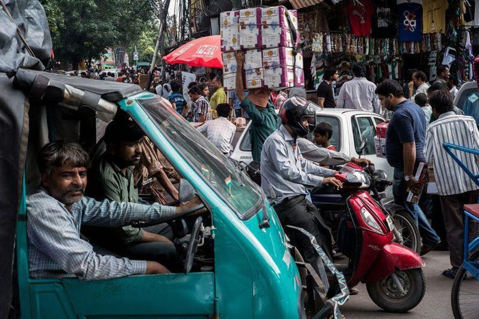 Người tham gia giao thông ở Chandni Chowk, New Delhi (Ấn Độ). Đây là một trong những thủ đô có dân số cao nhất thế giới. Ảnh: Bloomberg.