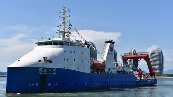 Cách đây hơn một tháng, mạng truyền hình toàn cầu Trung Quốc (CGNT) đưa tin tàu Thám tác số 1 chở theo 60 nhà khoa học nước này cùng tàu lặn có người lái mang tên Dũng sĩ biển sâu, có khả năng lặn ở độ sâu 4.500 m, tiến hành chuyến thám hiểm 20 ngày ở Biển Đông.