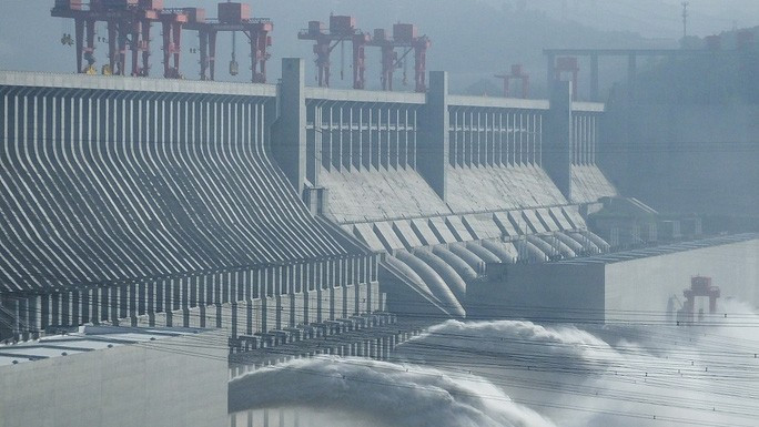 | Đập Tam Hiệp lại mở 3 cửa xả lũ. Ảnh: CGTN |