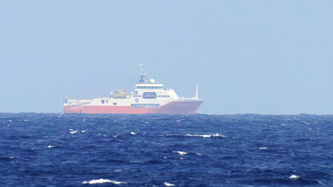 Tàu Hải Dương Địa chất 8 đang hoạt động trái phép tại vùng đặc quyền kinh tế, thềm lục địa Việt Nam. Ảnh: Ngư dân cung cấp