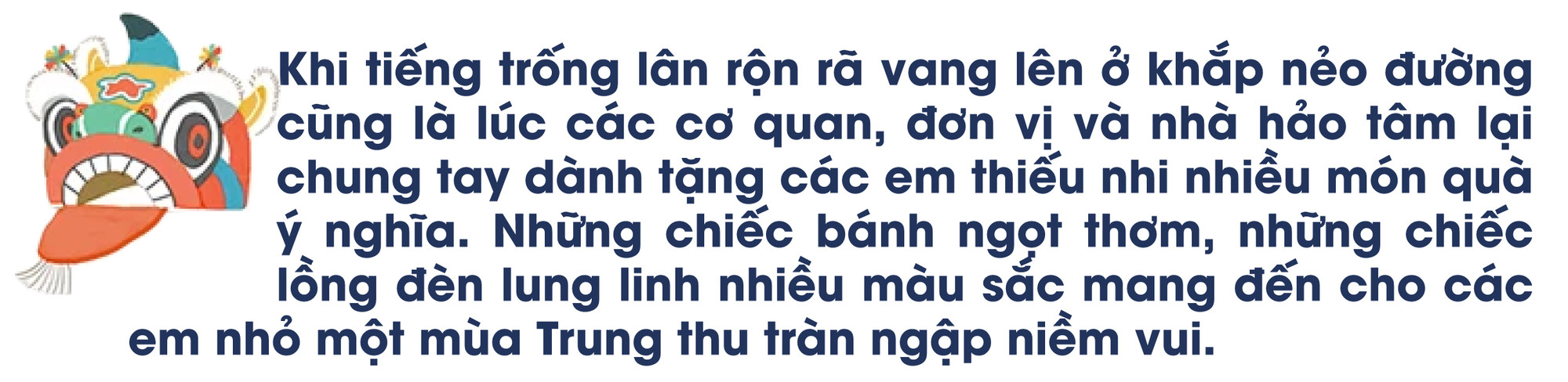 Quỹ từ thiện Bông Sen đã trao tặng 100 phần quà gồm: lồng đèn, bánh kẹo cho các bệnh nhi đang điều trị. Chị Võ Thị Ngọc Hân-chủ quán cơm Yên Vui, thành viên Quỹ từ thiện Bông Sen-bộc bạch: “Chương trình được tổ chức với mong muốn động viên các con tiếp tục nỗ lực chiến đấu với bệnh tật, không cảm thấy cô đơn trong ngày Tết Trung thu. Hy vọng các con luôn vui vẻ, sớm bình phục trở lại cuộc sống bình thường”.