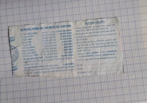 Bên cạnh đó, số trúng thưởng còn nguyên vẹn, các thông tin quan trọng như số seri, dãy số trúng thưởng và ngày phát hành đều còn đầy đủ. Không có dấu hiệu gian lận, phần rách do dính nước mưa, không phải cố ý sửa đổi hay làm giả vé.