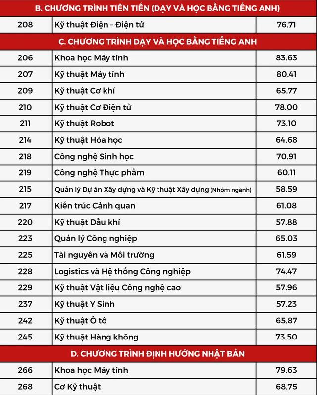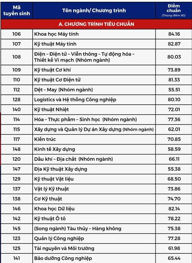 Điểm chuẩn từng ngành cụ thể như bảng sau: