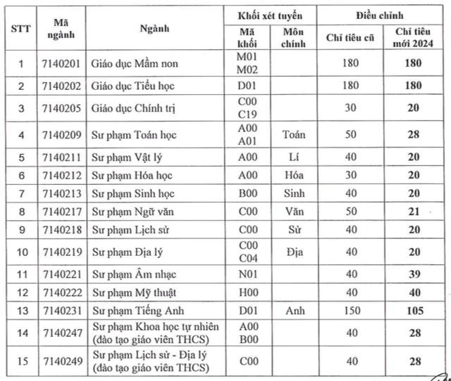 Như vậy, nếu so với thông tin trường dự kiến trong đề án tuyển sinh, 12 ngành đào tạo sư phạm bị giảm chỉ tiêu (tổng chỉ tiêu từ 945 xuống 769). Nhưng so với lần điều chỉnh tháng 7, tổng chỉ tiêu các ngành sư phạm tăng thêm gần 400.