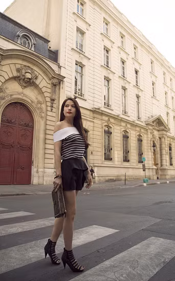 Nữ diễn viên diện trang phục cá tính, thanh lịch trong chuyến đi cùng các nhà thiết kế của Project Runway tìm hiểu ngành thời trang Pháp.