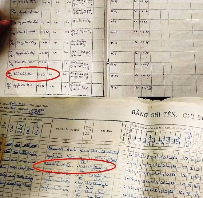 Trong tài liệu lưu trữ của Trường THCS Thịnh Thành và Phòng GDĐT huyện Yên Thành (Nghệ An), có người tên Thái Đình Hoài (quê quán ở xã Thịnh Thành, huyện Yên Thành) nhưng lại có 2 ngày tháng năm sinh khác nhau. Ảnh VTC