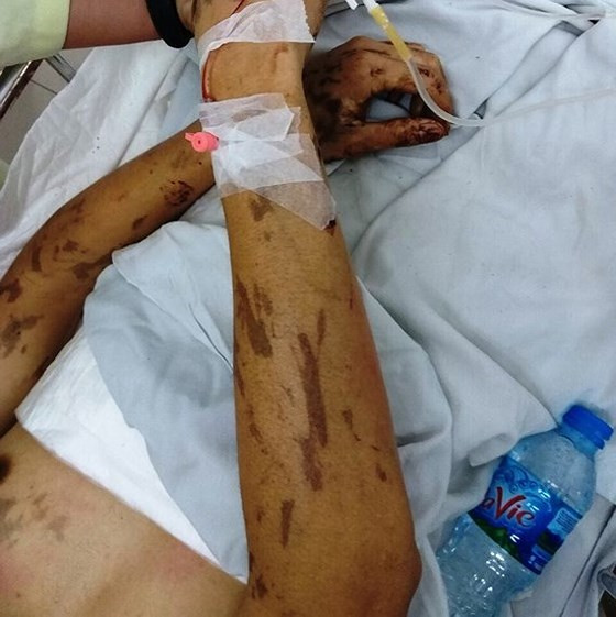 Theo đó, đặc điểm 2 đối tượng thực hiện hành vi phạm tội, về tuổi từ 20-30 tuổi, cao khoảng 1,6m, đội mũ lưỡi trai, thân người hơi gầy, mặc áo khoác dài tay, quần jean, giọng miền Bắc, điều khiển xe mô tô có gắn giỏ phía trước. Đối tượng gây án dùng một bình thủy tinh đựng axít và con dao bầu dài khoảng 30cm.
