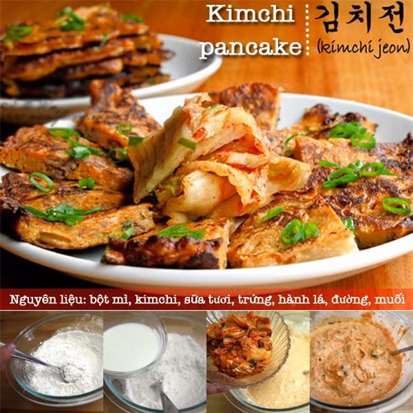 - Tiếp theo là cho nốt trứng và nước kimchi vào trộn đều,trộn tiếp bột với kimchi đã thái nhỏ