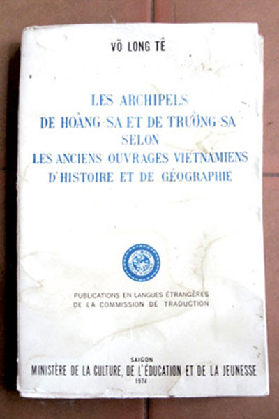 Tình cờ, trong thời điểm dư luận đang rất quan tâm đến lời tuyên bố của Thủ tướng Nguyễn Tấn Dũng về chủ quyền không thể tranh cãi được của Việt Nam đối với Hoàng Sa và Trường Sa tại kỳ họp Quốc hội vừa qua, tôi tìm thấy trong tủ sách cũ của anh tôi cuốn sách Les archipels de Hoàng-Sa et de Trường- Sa selon les anciens ouvrages Vietnamiens d’ histoire et de géographie” (Quần đảo Hoàng Sa và Trường Sa trong thư tịch cổ của Việt Nam về lịch sử và địa lý) của học giả Võ Long Tê được xuất bản tại Sài Gòn năm 1974.