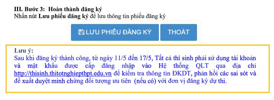 Thời gian chính thức đăng ký thi từ ngày 2/5 đến 10/5. Thông tin đăng ký của thí sinh chỉ được công nhận trong thời gian này.