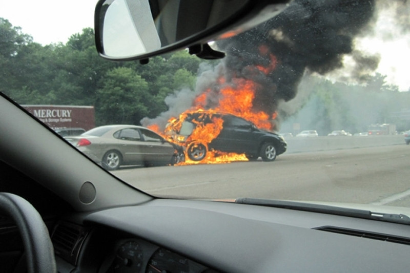 Không hiếm những trường hợp xe bốc cháy ngay sau khi tai nạn. Tùy thuộc vào khu vực tác động, một tai nạn xe hơi có thể gây ra một vụ cháy xe.