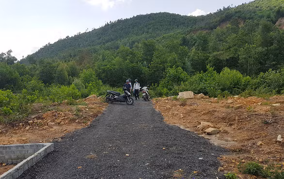 Ngày 20-10, chúng tôi tìm về khu vực được rao bán trên tuyến đường tránh Nam Hải Vân. Đây là khu vực đồi núi, không có nhà cửa kiên cố mà chỉ có nhà tạm bợ của một số hộ dân được giao đất trồng rừng và chăn nuôi.