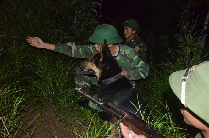 Đêm xuống, tiếng cóc nhái kêu vang rền khắp nơi. Đồn biên phòng Ea Hleo loang loáng ánh đèn pin. Khẩu lệnh tuần tra được triển khai sau lúc 8 giờ tối. Từng người lính lao ra sân, bước chân lẫn với âm thanh lách cách của băng đạn nảy lên trên thân súng. “Nghiêm! Đường tuần tra theo hướng Đông Nam, gần khu vực cột mốc. Đồng chí cảnh khuyển dẫn chó đi chếch về phía trái đội hình 15 mét theo hướng gió…”. Đó là tiếng khẩu lệnh của cán bộ chỉ huy đội tuần tra.