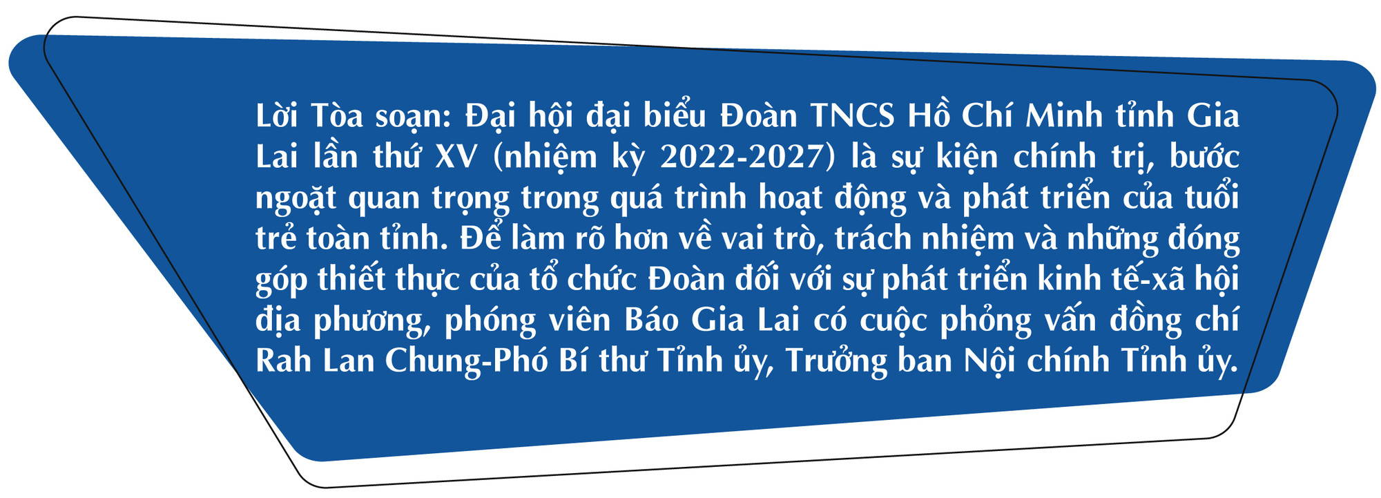 - Đồng chí RAH LAN CHUNG: Đại hội đại biểu Đoàn TNCS Hồ Chí Minh tỉnh Gia Lai lần thứ XV là sự kiện chính trị quan trọng; là đợt sinh hoạt chính trị lớn, sâu rộng của tuổi trẻ tỉnh Gia Lai, cũng là ngày hội, diễn đàn để ĐVTN trong tỉnh thể hiện tinh thần dân chủ, đổi mới, sáng tạo, nhiệt huyết và thể hiện quyết tâm cao cho nhiệm kỳ mới.