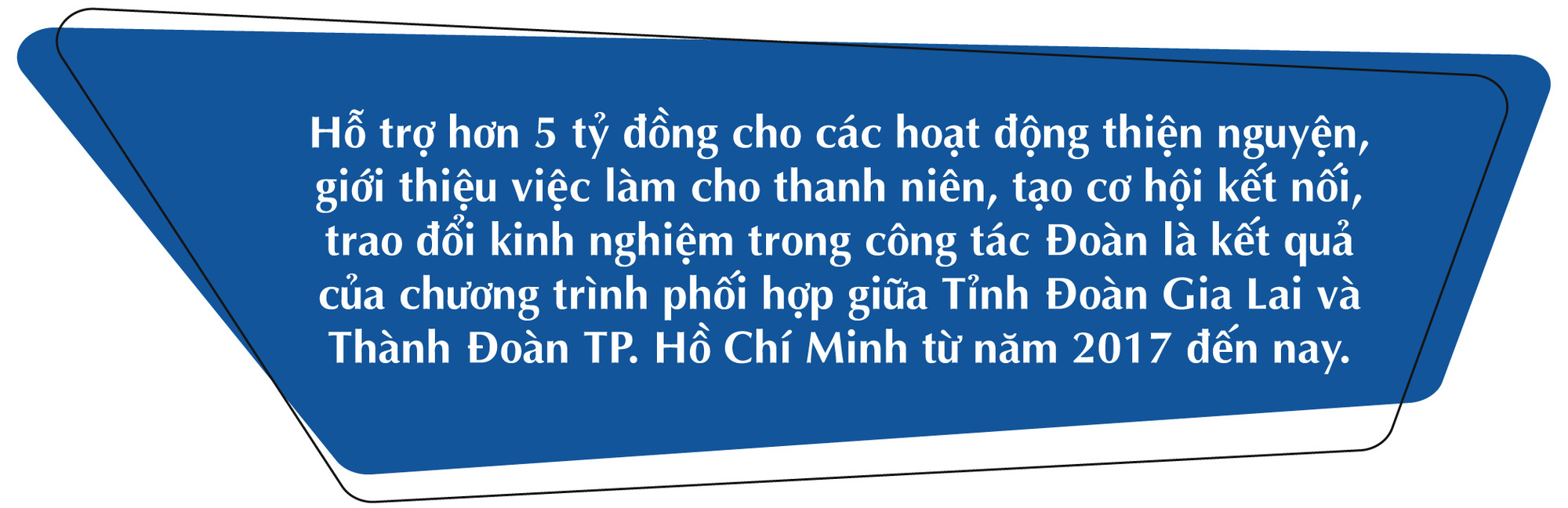 Trong giai đoạn 2019-2022, Tỉnh Đoàn phối hợp với Trung tâm Hỗ trợ học sinh, sinh viên TP. Hồ Chí Minh trao tặng 98 suất học bổng cho học sinh, sinh viên trên địa bàn tỉnh với tổng trị giá hơn 823 triệu đồng; tổ chức 8 chương trình tư vấn hướng nghiệp trực tiếp cho 69.000 học sinh và 6 chương trình tư vấn hướng nghiệp trực tuyến cho 18.000 học sinh. Bên cạnh đó, 2 đơn vị tiếp tục phối hợp rà soát số lượng, tình hình sinh viên có hoàn cảnh khó khăn của tỉnh Gia Lai đang học tập trên địa bàn TP. Hồ Chí Minh để tổ chức gặp mặt, động viên, chăm lo, hỗ trợ và tư vấn, giới thiệu việc làm sau khi tốt nghiệp. Tỉnh Đoàn Gia Lai giới thiệu và vận động đoàn viên, thanh niên, sinh viên tham gia các cuộc thi về khởi nghiệp, cuộc thi học thuật, nghiên cứu khoa học do Thành Đoàn, Hội Liên hiệp thanh niên Việt Nam TP. Hồ Chí Minh tổ chức.