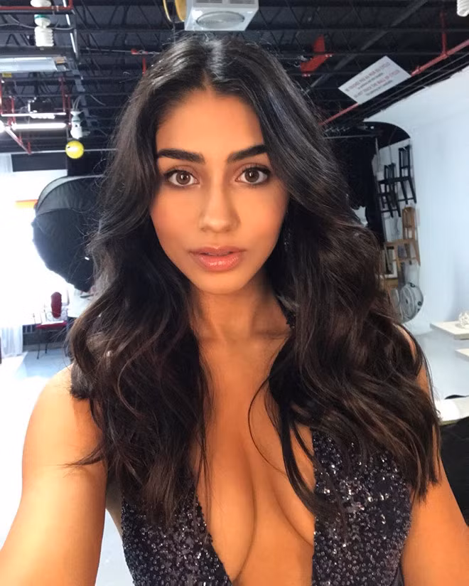 Tiếp theo, ngôi vị thứ 4 được ưu ái cho Megha Sandhu. Người đẹp đến từ Canada cao 1,79 m, có thể nói được tiếng Anh, tiếng Pháp và tiếng Hindi. Trước đó, Sandhu từng thắng giải Hoa hậu tuổi teen Canada 2012, Á hậu 3 Hoa hậu Hoàn vũ Canada 2018. Với bề dày kinh nghiệm, cô hứa hẹn sẽ tỏa sáng tại cuộc thi năm nay.
