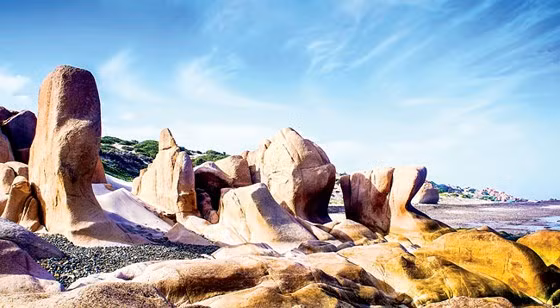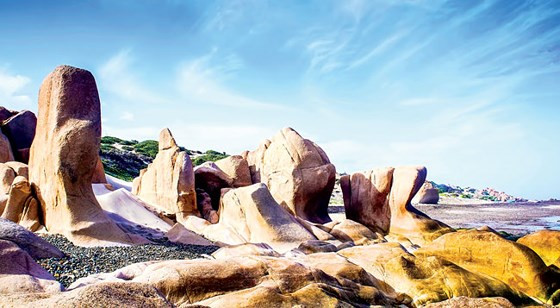 Những khối đá khổng lồ với hình thù kỳ quái bên bờ biển Cổ Thạch.