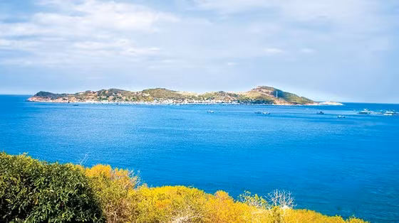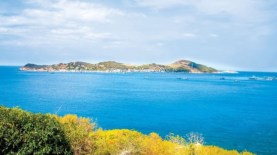 Biển Bình Tiên trong xanh nhìn ra đảo Bình Hưng sầm uất.
