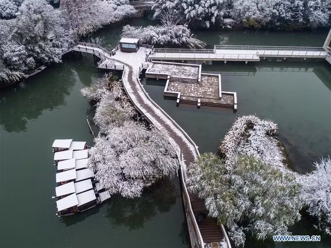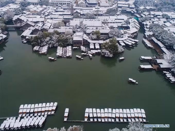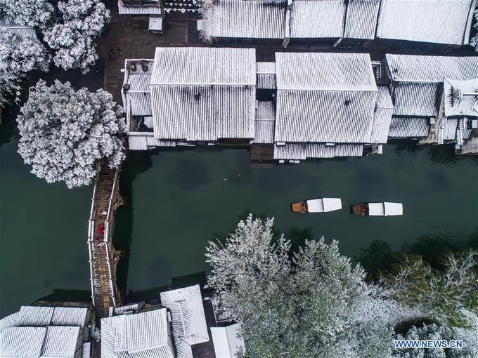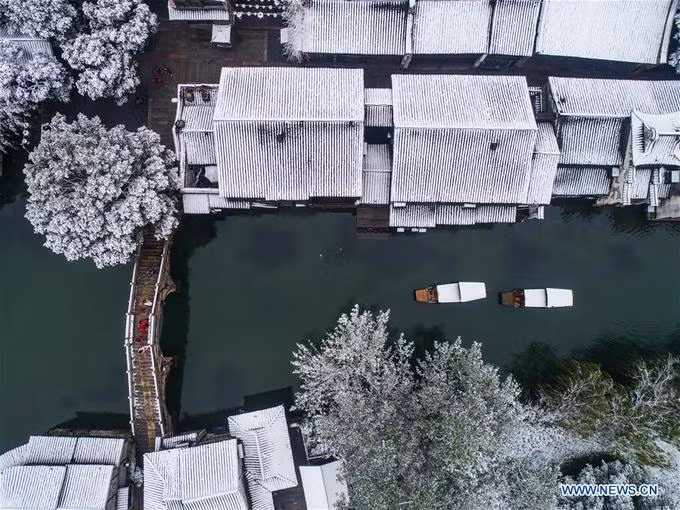 Năm nay, tuyết rơi sớm hơn mọi năm. Du khách tới Ô Trấn (Chiết Giang, Trung Quốc) đã được thưởng ngoạn cảnh đẹp thần tiên.