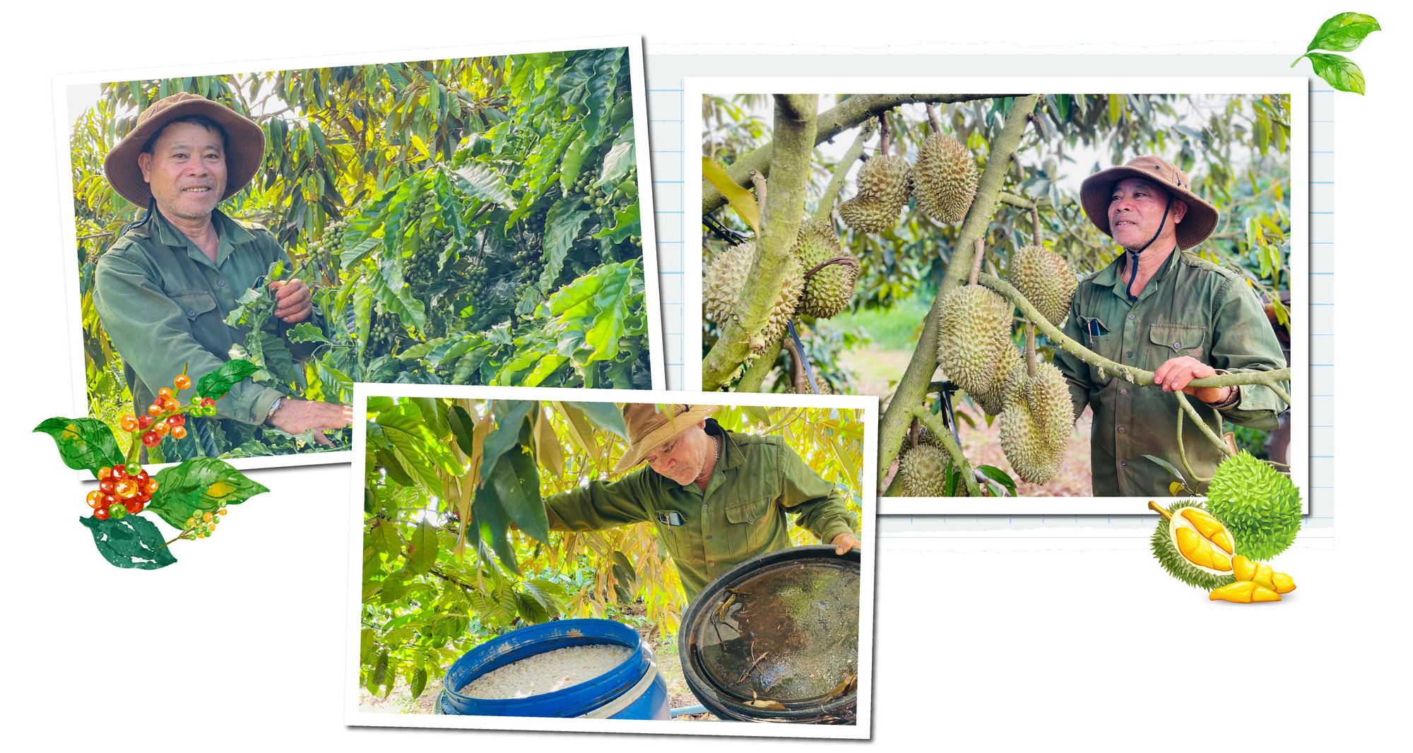 Khi được người dân trong vùng gọi là “tỷ phú chân đất”, ông Phan Văn Chạo (thôn 2, xã Nghĩa Hòa) chỉ cười hiền khiêm tốn. Ông đưa đôi tay chai sạn của mình lên ngắm nghía và nhắc nhớ: “Quả đúng là “Bàn tay ta làm nên tất cả/Có sức người sỏi đá cũng thành cơm”. Tôi còn nhớ như in khoảnh khắc lần đầu đặt chân lên vùng đất Tây Nguyên rộng lớn này. Cảm xúc như vỡ òa bởi ở đây tôi sẽ thỏa sức với đam mê nông nghiệp của mình”. Nói rồi, ông Chạo chỉ về phía cuối vườn và kể về hành trình đầy gian nan, thấm đẫm mồ hôi, nước mắt trong những ngày đầu lập nghiệp.