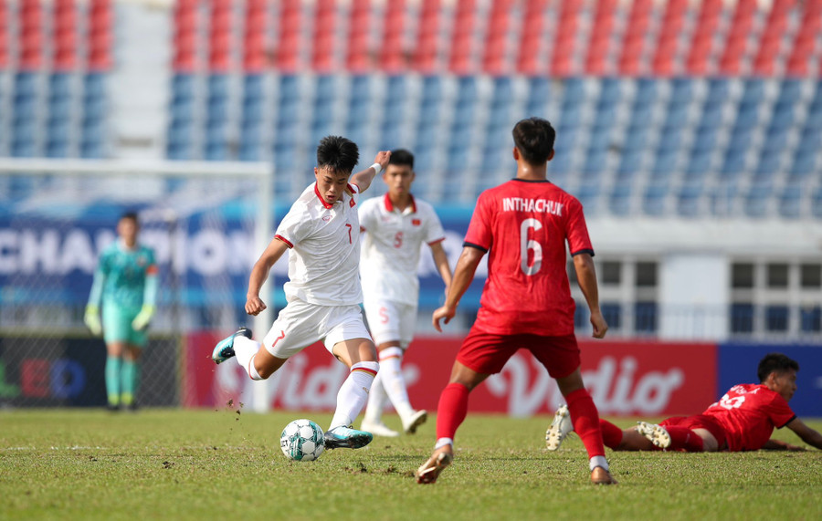 Có lẽ trước khi HLV Hoàng Anh Tuấn thông báo nhân sự xuất phát của đội U.23 VN trận gặp U.23 Lào, rất ít người nghĩ đến cái tên Thái Bá Đạt. Với bản thân chàng trai 18 tuổi này, việc vượt qua những đàn anh như Vũ Minh Hiếu đang chơi bóng ở K-League 2 (Hàn Quốc) để có tên trong danh sách 23 thành viên chính thức dự giải U.23 Đông Nam Á đã là niềm hạnh phúc nằm ngoài sự tưởng tượng. Đối đầu với nhiều cầu thủ hơn mình đến 4 tuổi, thoạt đầu Thái Bá Đạt hơi bị ngộp ở lần đầu đá chính, cũng là điều tương đối dễ hiểu. Tuy nhiên sau giây phút lúng túng vì tâm lý, Đạt chơi không quá tệ và HLV Hoàng Anh Tuấn cũng tạm hài lòng với ngày ra mắt của cậu học trò sinh năm 2005.