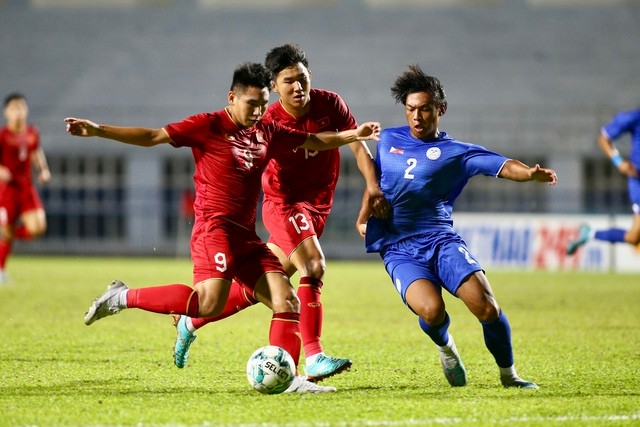 U.23 Philippines vẫn chủ yếu đá bóng dài, bóng bổng để tận dụng những pha thoát xuống sau lưng của tiền đạo, nhưng U.23 Việt Nam đã hóa giải thành công với hàng phòng ngự 3 người chơi chắc chắn và đọc tình huống tốt.
