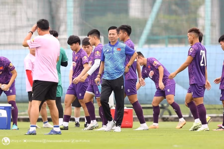 | HLV Hoàng Anh Tuấn bước vào buổi tập đầu với U.23 VN |