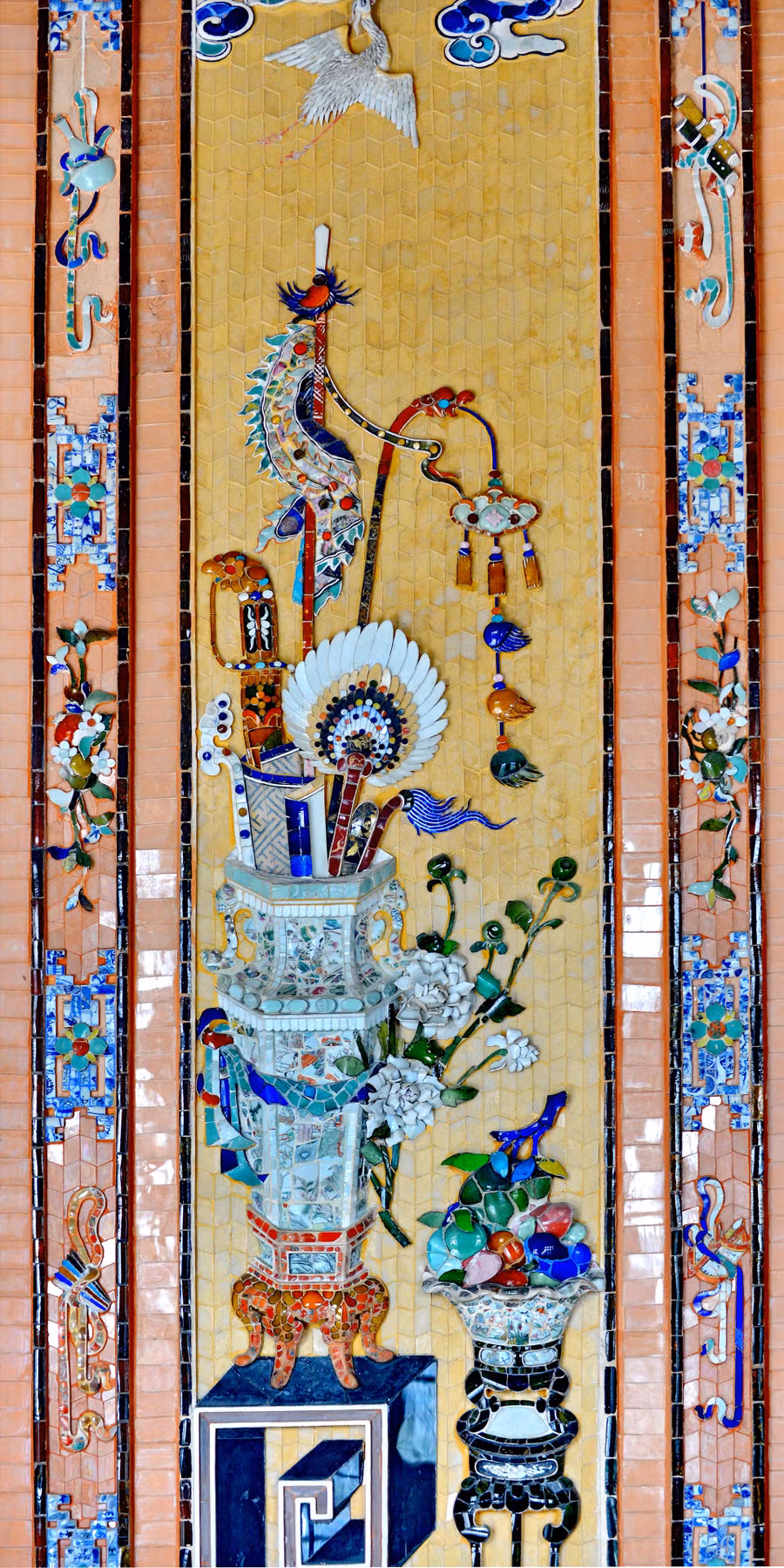 Bên cạnh yếu tố mới lạ và độc đáo đến từ sự giao thoa văn hóa, kiến trúc Đông - Tây, giá trị lớn nhất đưa Ứng Lăng đạt đến tầm kiệt tác nghệ thuật chính là nghệ thuật khảm sành sứ và thủy tinh màu.