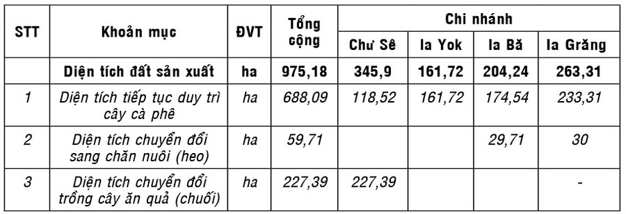 b) Liên quan đến nội dung chỉ đạo Công ty cổ phần Cà phê Gia Lai xây dựng phương án sản xuất kinh doanh (trong đó có diện tích tại Chi nhánh Ia Grăng-huyện Ia Grai).