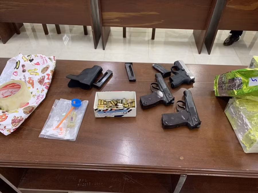 Quá trình kiểm tra, lực lượng chức năng phát hiện trên xe SH của Khanh cất giấu 1 túi xách màu đen, bên trong có nhiều bịch nilon chứa tinh thể màu trắng nghi là ma túy. Đồng thời, trong túi xách của Khanh, lực lượng chức năng còn phát hiện 3 khẩu súng ngắn cùng 40 viên đạn.