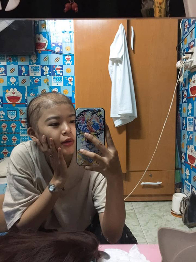 | Quá trình hóa trị đã khiến tóc của Hồng Anh rụng hết, nhưng gương mặt của cô vẫn giữ được nét đáng yêu, tinh nghịch của tuổi đôi mươi |