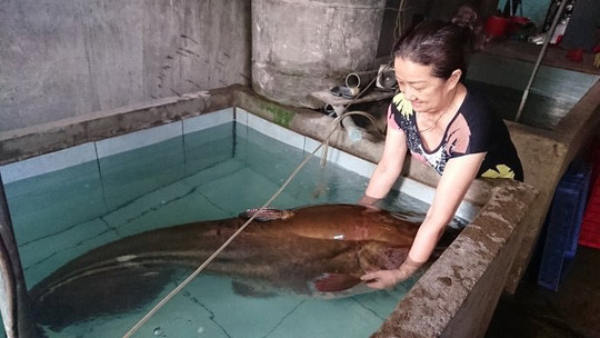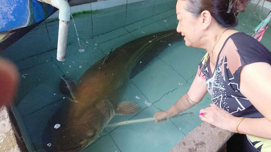 Theo chủ nhà hàng, con cá quá lớn nên khi người đàn ông mang đến bán, bà phải nhờ 4 người mới đưa được vào bể chứa. Nhà hàng dự tính sẽ xẻ thịt để bán với giá 500.000/kg.
