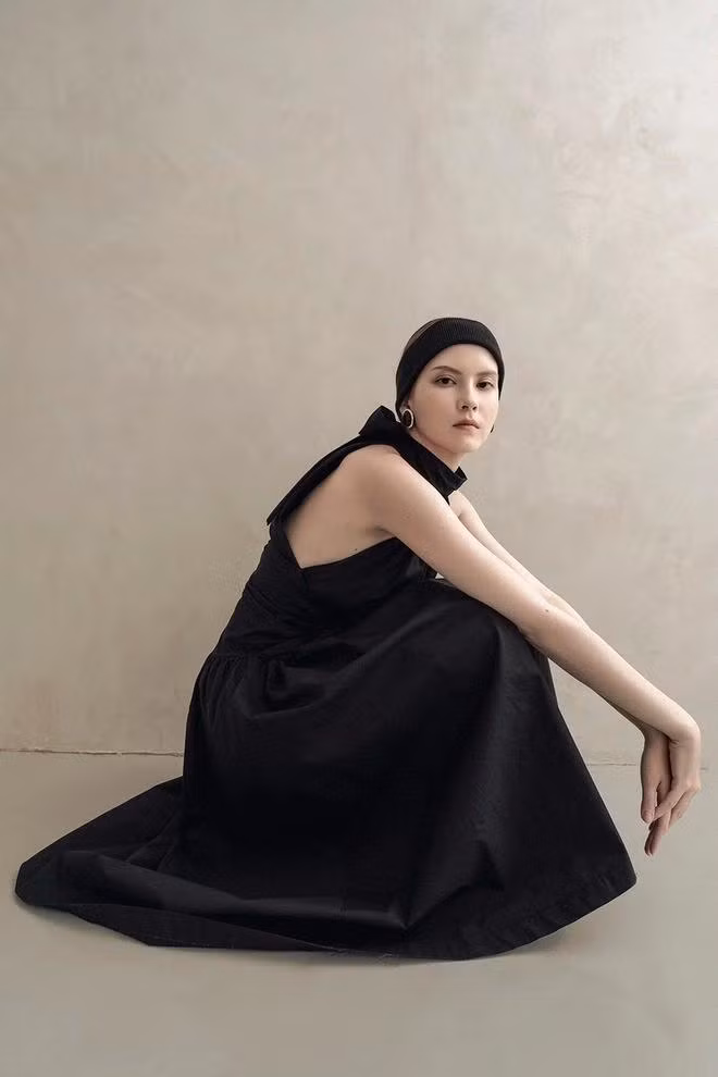 | Váy dài lấy cảm hứng từ chiếc áo yếm làm từ vải cotton với độ nhún xếp tự nhiên cuốn hút, chi tiết cách điệu nơi eo tạo hình ảnh cá tính ấn tượng. ẢNH: WEPHOBIA |