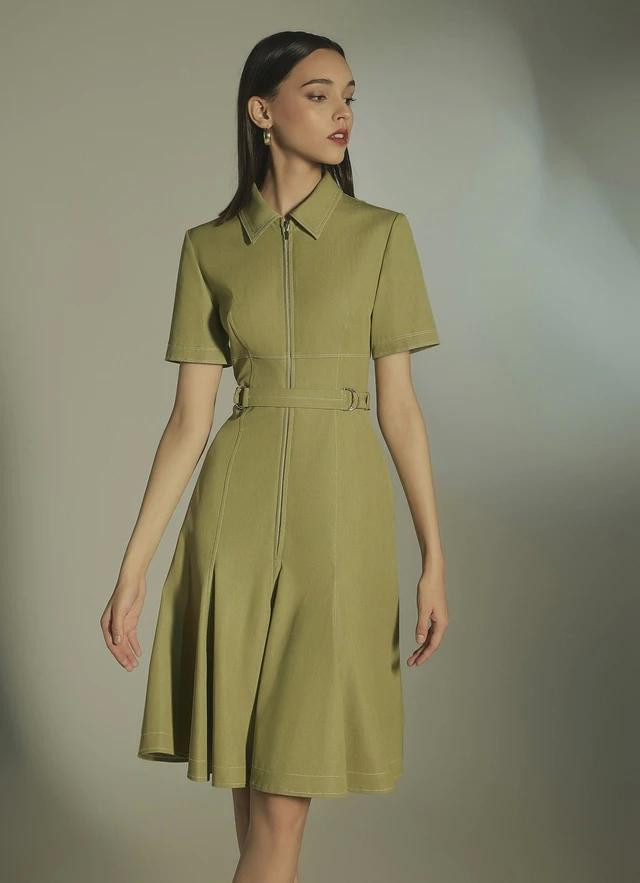 Thiết kế đầm sơ mi cải biên hàng cúc bằng chi tiết dây kéo làm nên hình ảnh năng động, tiện lợi và hiện đại hơn cho quý cô. Thiết kế được làm từ chất liệu có độ dày vừa phải giúp giữ phom tốt tạo hình ảnh lịch sự và chỉn chu, do đó phù hợp với nhiều phong cách khác nhau: công sở, dạo phố, những buổi tiệc nhẹ hay hẹn hò cà phê