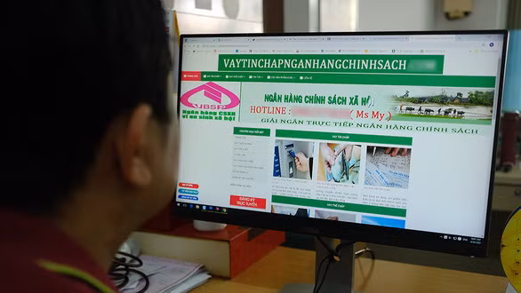 Một trang web tư nhân đứng ra cho vay nhưng giới thiệu cho vay tín chấp của Ngân hàng Chính sách xã hội - Ảnh: TẤN LỰC
