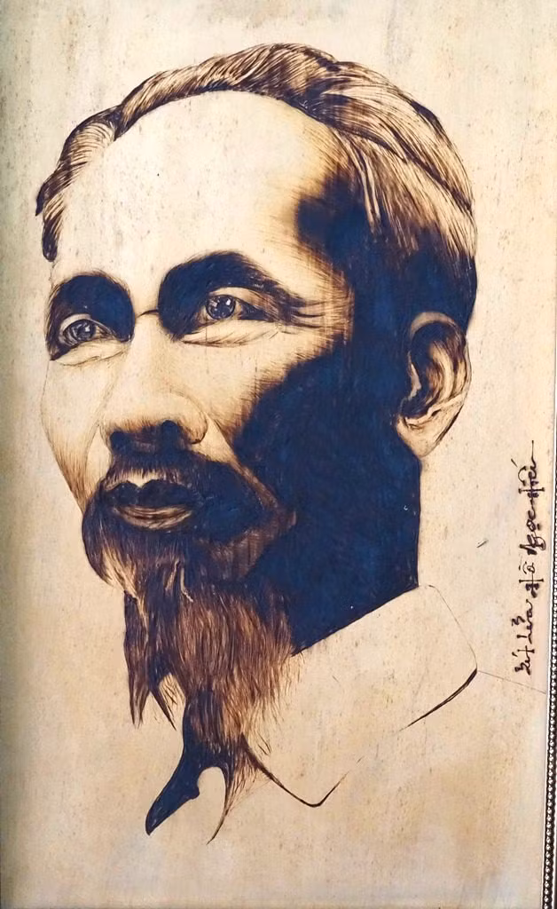 Khi ngắm 32 bức chân dung Bác Hồ được vẽ bằng bút lửa, nhiều người sửng sốt vì tranh rất có hồn và nhân vật hiện lên sống động như thật.