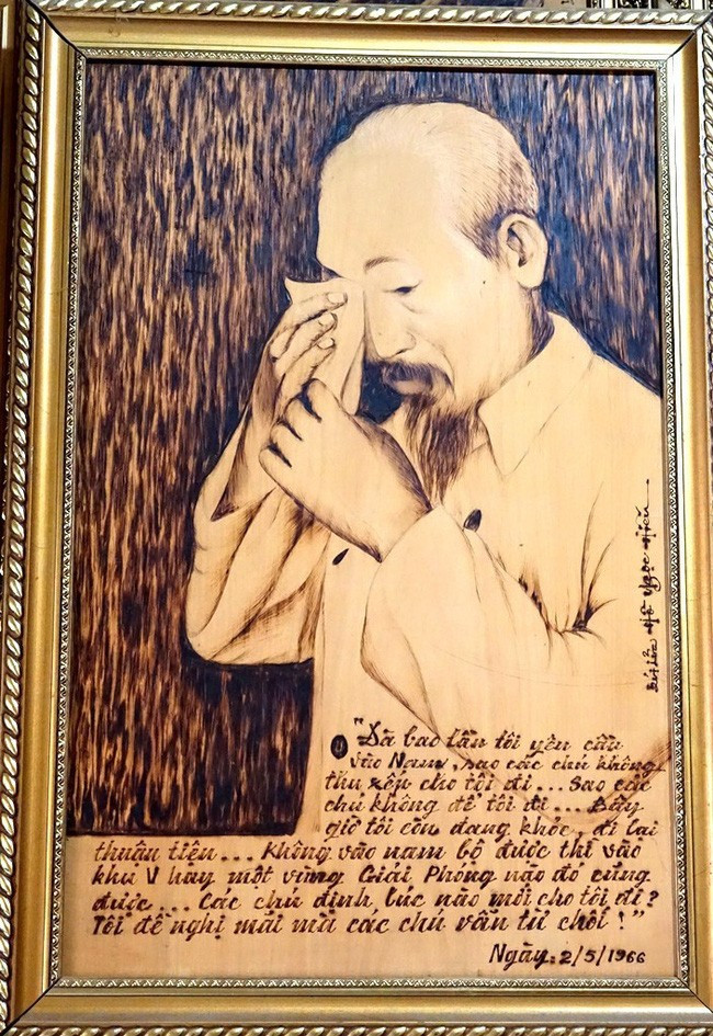 Kỷ lục gia Hồ Ngọc Hiếu - họa sĩ giữ kỷ lục Người vẽ chân dung Bác Hồ bằng bút lửa nhiều nhất (năm 2013) - tự hào: Mỗi bức vẽ đều mang một niềm cảm hứng khác nhau và cảm xúc không hề lặp lại. Trong đó, có bức Bác Hồ lau nước mắt với lời chú thích: "Đã bao lần tôi yêu cầu vào Nam, sao các chú không thu xếp cho tôi đi…". Bức tranh vẽ Bác sống động, y như thật khiến người xem cũng phải giật mình, thích thú.