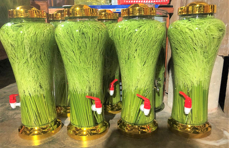 | Bà con Tày, Nùng ở xã An Nhơn lựa chọn đòng đòng để chế biến ngâm rượu đòng đòng nếp quýt bán Tết |
