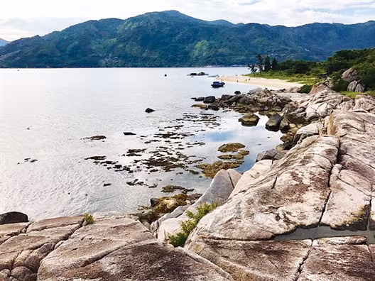 Có rất nhiều đảo lớn nhỏ quanh Đầm Môn cho bạn khám phá, chúng tôi chọn Hòn Nưa vì đảo này nằm giữa hai tỉnh Khánh Hòa và Phú Yên. Trên bãi đá tuyệt đẹp và khá cheo leo của đảo còn có một cột mốc ranh giới tỉnh.