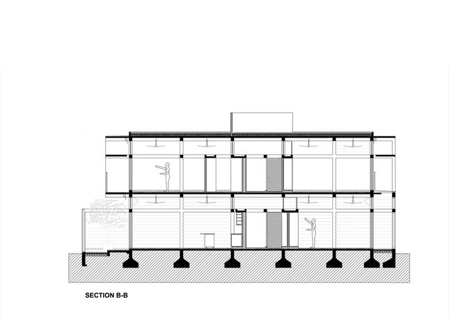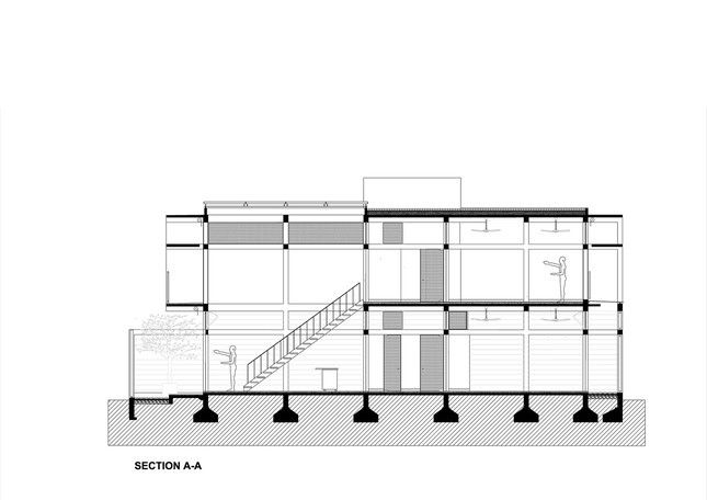 Hệ lam được bố trí hai đầu của ngôi nhà để điều tiết thông gió, hút gió từ ngoài trời làm mát không khí bên trong, đồng thời thông gió chéo với giếng trời và các khe hở được bố trí tại các phòng.