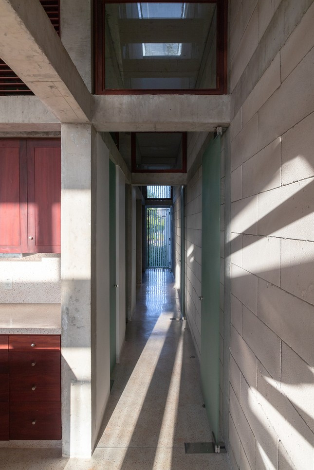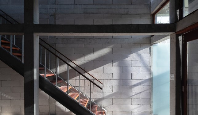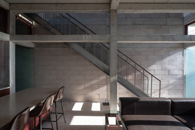 Các khe hở được bố trí khắp ngôi nhà không chỉ có chức năng thông khí, nó còn là nhân tố mở đường cho "cuộc dạo chơi của ánh sáng", điều làm nên sự thú vị cho ngôi nhà bình dị không hề sơn trát.