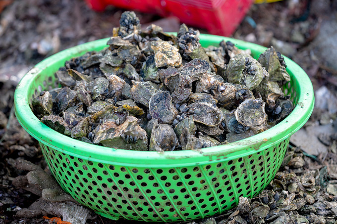 Người dân nuôi hàu trên những chiếc lốp xe cũ và vận chuyển vào bờ bằng thuyền khi số hàu đã đủ tuổi.