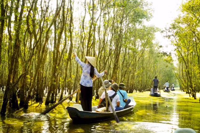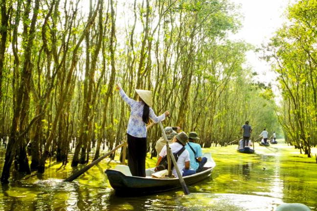 Du khách có thể vừa ngồi xuồng, vừa chạm tay vào những đám bèo ngay sát mặt nước, ngắm những bông điên điển vàng rực hai bên, cùng những dãy tràm xanh mướt. Nếu đi vào sáng sớm hoặc xế chiều, du khách sẽ thích thú khi chứng kiến những đàn chim bay về tổ rợp cả bầu trời.